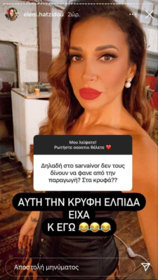 Συγκεκριμένα η Ελένη Χατζίδου δέχθηκε πάρα πολλές ερωτήσεις από τους ακολούθους της για το Survivor, καθώς το reality επιβίωσης επέστρεψε στους δέκτες και έχει κερδίσει το ενδιαφέρον του τηλεοπτικού κοινού.