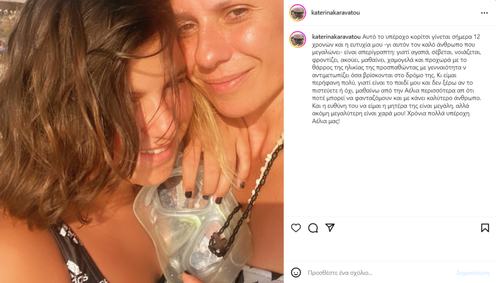 Ιδιαίτερη ημέρα είναι η 14η Σεπτεμβρίου για την Κατερίνα Καραβάτου, καθώς έχει γενέθλια η κόρη της Αέλια.