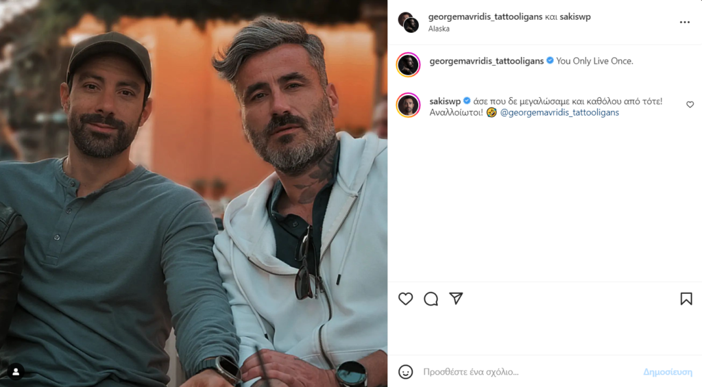 Ενώ ο Γιώργος Μαυρίδης που είναι ιδιαιτερα ενεργός στα social media, μετά από πολλά χρόνια ανέβασε mia κοινή φωτογραφία με τον Σάκη Τανιμανίδη στο Instagram και μάλιστα αστειεύτηκε για το μέγεθος των κεφαλιών τους.