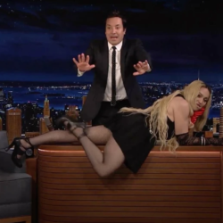 Ενώ κατά τη διάρκεια της συζήτησης, η Madonna σηκώθηκε και ανέβηκε αισθησιακά πάνω στο γραφείο του Jimmy Fallon. Τότε ο παρουσιαστής, γελώντας, της έλεγε «σταμάτα», ενώ προσπαθούσε να την καλύψει με το σακάκι του.