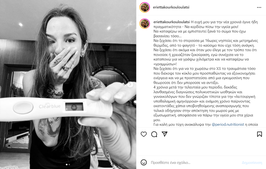 Με μια μακροσκελή ανάρτηση στον προσωπικό της λογαριασμό στο Instagram, η Εριέττα Κούρκουλου αποκάλυψε ότι ξεπέρασε κάποια θέματα υγείας που είχε και μάλιστα κατάφερε να φτιάξει τον κύκλο της μετά από τέσσερα ολόκληρα χρόνια.