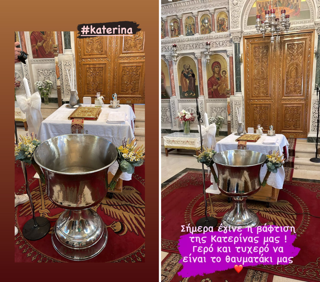 Συγκεκριμένα το ζευγάρι επέλεξε την ημέρα αυτή για να βαφτίσει την δύο ετών κόρη τους, Κατερίνα.