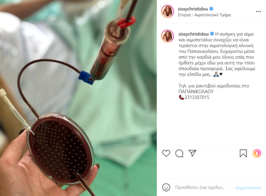 Η Σίσσυ που είναι ιδιαίτερα ενεργή στα social media, έκανε μια νέα ανάρτηση στο Instagram μέσα από το νοσοκομείο και ευχαρίστησε όσους έδωσαν αίμα, αλλά τόνισε πόσο σημαντική είναι η ανάγκη της αιμοδοσίας.