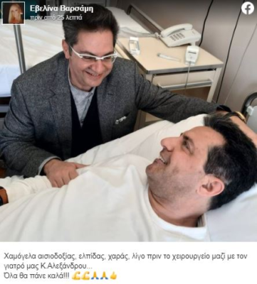 Λίγο πριν ο παρουσιαστής περάσει την πόρτα του χειρουργείου, η σύζυγός του, Εβελίνα Βαρσάμη έστειλε ένα αισιόδοξο μήνυμα μέσω Facebook.