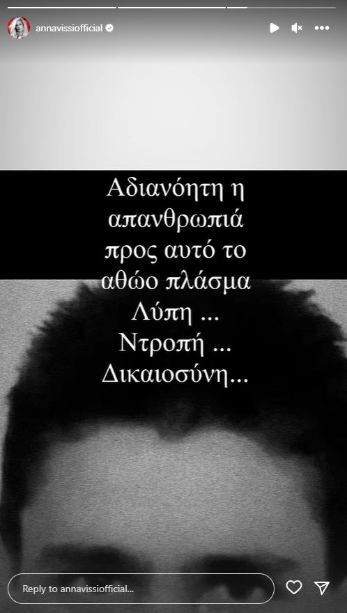 «Αδιανόητη η απανθρωπιά προς αυτό το αθώο πλάσμα. Λύπη… Ντροπή… Δικαιοσύνη…» έγραψε η Άννα Βίσση στο Instagram story της.