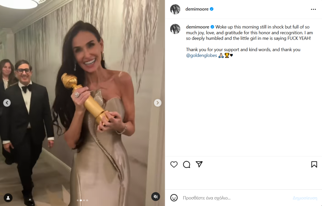 Η πρώτη ανάρτηση της Demi Moore‎‎ μετά τη βράβευσή της στις Χρυσές Σφαίρες: «Ξύπνησα κι είμαι ακόμα σοκαρισμένη»