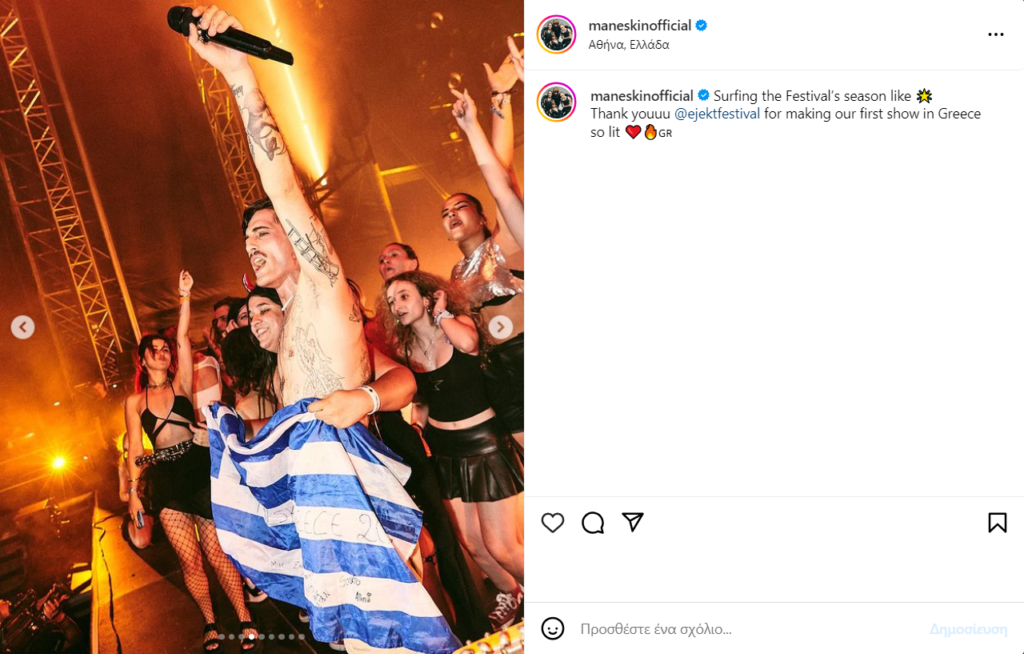 Η πρώτη ανάρτηση των Maneskin μετά τη συναυλία τους στην Ελλάδα