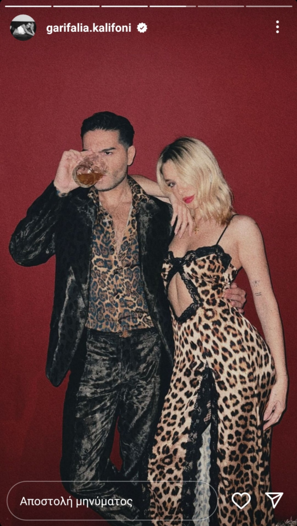 Ενώ η Γαρυφαλλιά Καληφώνη υποδέχτηκε το 2024 μαζί με τον Χρήστο Μάστορα όπως φαίνεται από την φωτογραφία που δημοσίευσε στον προσωπικό της λογαριασμό στο Instagram μαζί του.