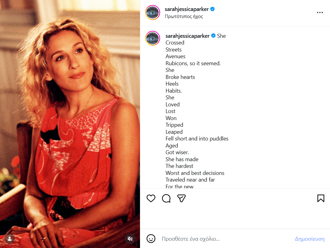 Με μια ανάρτηση στα social media, η Sarah Jessica Parker αποχαιρέτησε την Carrie Bradshaw μετά την ανακοίνωση ότι η σειρά «And Just Like That» ολοκληρώνεται με την 3η σεζόν.