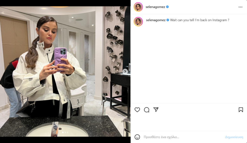 «Περίμενε μπορείς να πεις ότι επέστρεψα στο Instagram;», έγραψε η Selena Gomez στην ανάρτηση της.