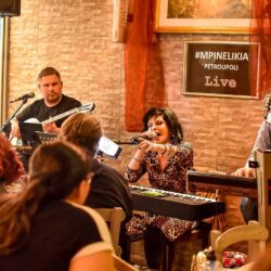 Η διαχρονική και πετυχημένη ερμηνεύτρια που δεν σταματά λεπτό να μας συντροφεύει μέσα από τα τραγούδια που επιλέγει ένα προς ένα για το κοινό της, κάθε Κυριακή μεσημέρι, συνεχίζει τις δυναμικές, επιτυχημένες sold out εμφανίσεις της, στο μουσικό μεζεδοπωλείο «Μπινελίκια» στην Πετρούπολη.