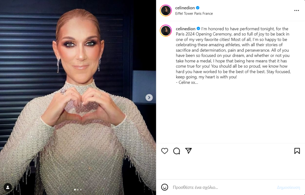 Ωστόσο, η Céline Dion μετά την εντυπωσιακή εμφάνισή της στους Ολυμπιακούς Αγώνες, έγραψε στα social media: