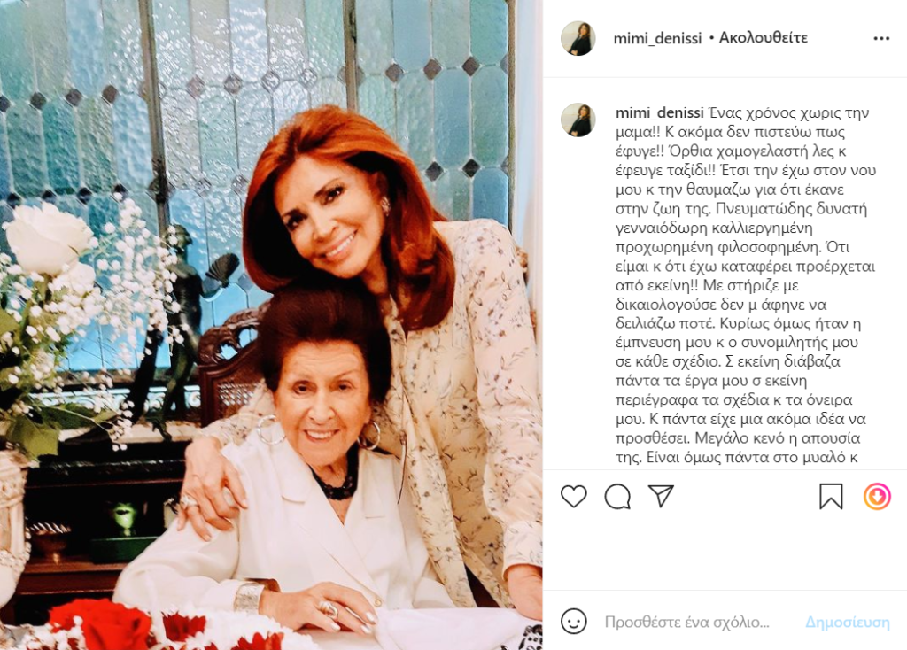 Συγκεκριμένα η Μιμή Ντενίση πόσταρε μια κοινή της φωτογραφία με την μητέρα της.
