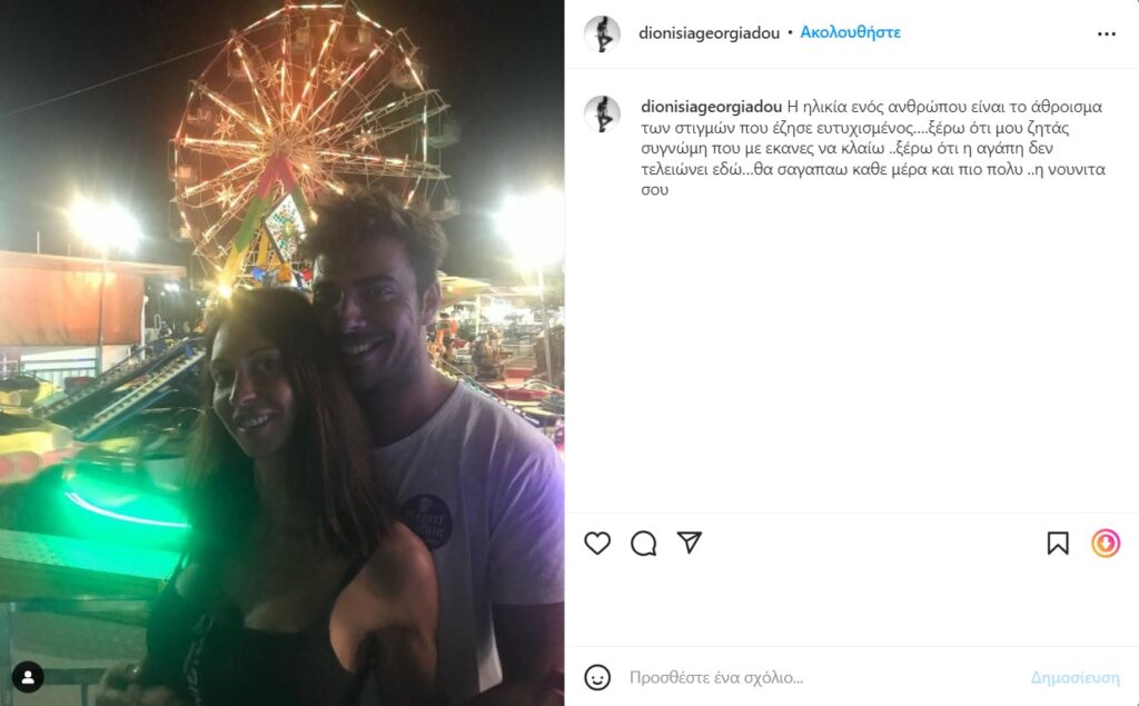 Συγκεκριμένα η Διονυσία δημοσίευσε μια κοινή τους φωτογραφία στο instagram και έγραψε στην λεζάντα: