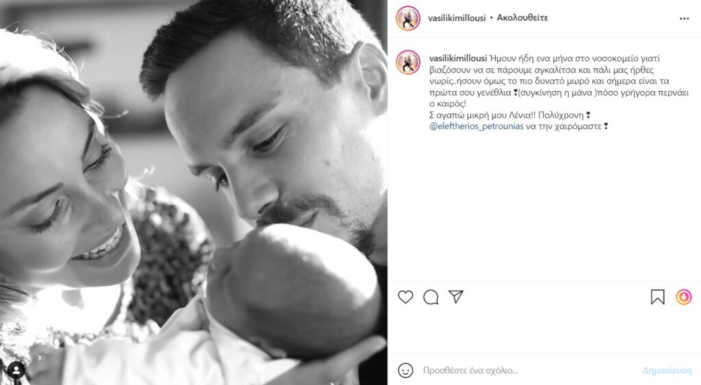«Ήμουν ήδη ένα μήνα στο νοσοκομείο γιατί βιαζόσουν να σε πάρουμε αγκαλίτσα και πάλι μας ήρθες νωρίς.. ήσουν όμως το πιο δυνατό μωρό και σήμερα είναι τα πρώτα σου γενέθλια (συγκίνηση η μάνα )πόσο γρήγορα περνάει ο καιρός! Σ αγαπώ μικρή μου Λένια!! Πολύχρονη @eleftherios_petrounias να την χαιρόμαστε».