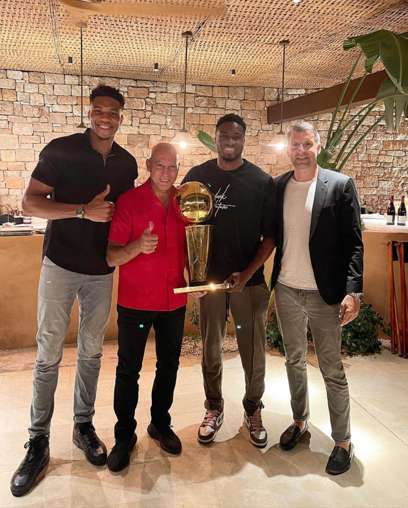 Συγκεκριμένα ο Νίκος Γκάλης φωτογραφήθηκε με τον Greek Freak, ο οποίος είχε μαζί του και το τρόπαιο του ΝΒΑ.
