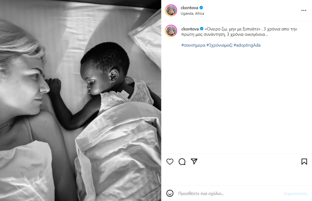 Ξεχωριστή ημέρα είναι η 10η Νοεμβρίου για τη Χριστίνα Κοντοβά, καθώς πριν από ακριβώς τρία χρόνια συναντήθηκε για πρώτη φορά με την κόρη της, Ada στην Ουγκάντα.