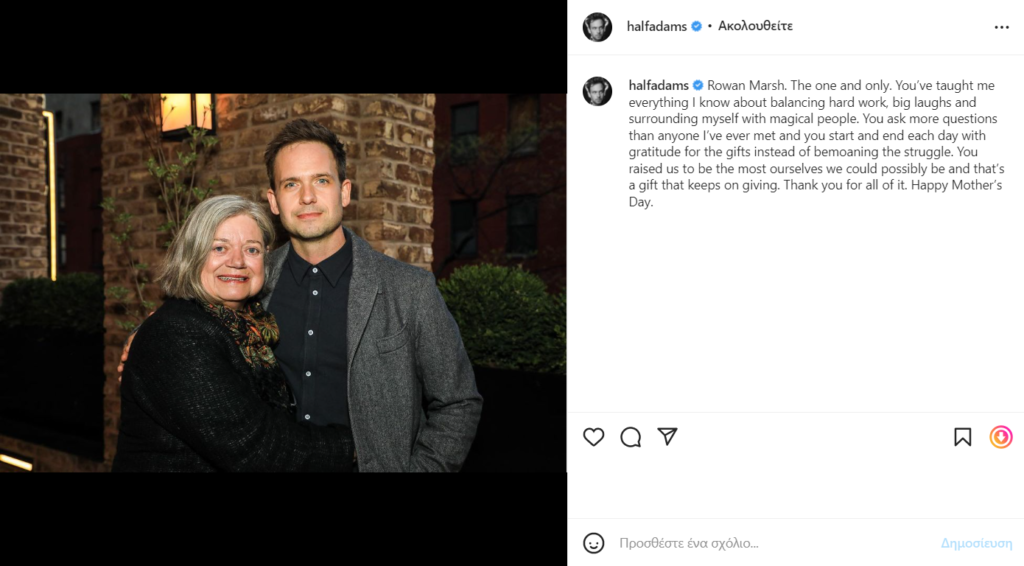Μάλιστα, το ίδιο έκανε και ο Patrick J. Adams, ο οποίος με αφορμή αυτή την ιδιαίτερη ημέρα δημοσίευσε στον προσωπικό του λογαριασμό στο Instagram μια φωτογραφία της μητέρας του.