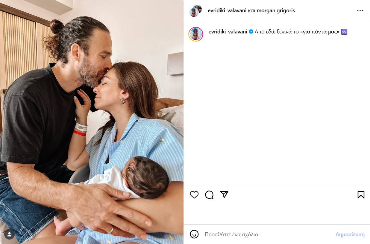 Η τρυφερή φωτογραφία της Ευρυδίκης Βαλαβάνη με τον Γρηγόρη Μόργκαν και τον νεογέννητο γιο τους