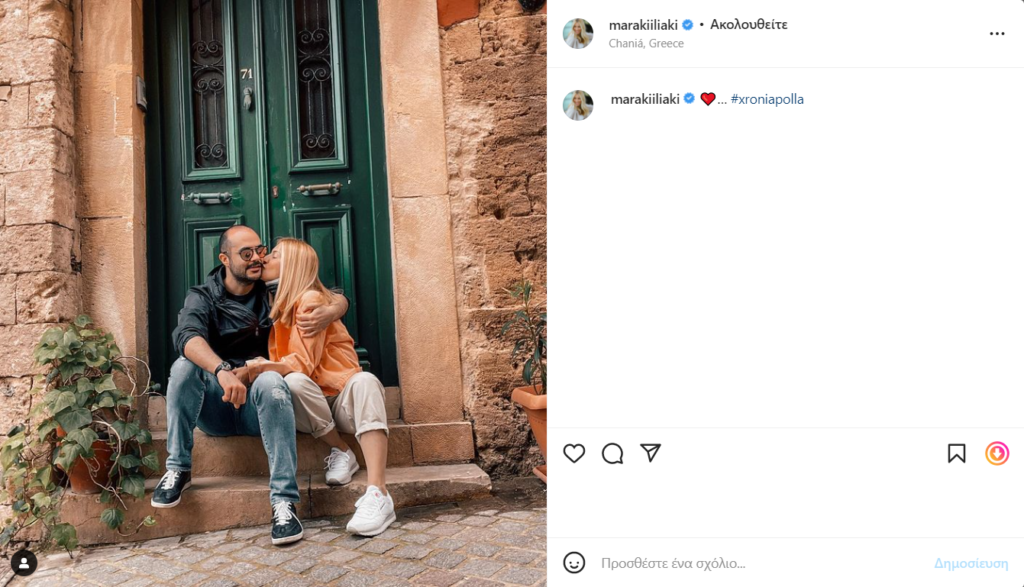 Συγκεκριμένα το ζευγάρι κλείνει τέσσερα χρόνια μαζί και η παρουσιάστρια ανέβασε στον προσωπικό της λογαριασμό στο instagram ένα κοινό τους στιγμιότυπο από τα σοκάκια των Χανίων.