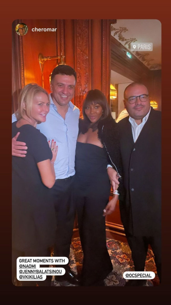 Η Naomi Campbell που είναι ιδιαίτερα ενεργή στα social media, κοινοποίησε στον προσωπικό της λογαριασμό στο Instagram την φωτογραφία, στην οποία την βλέπουμε μαζί με τον Βασίλη Κικίλια, την Τζένη Μπαλατσινού και τον επιχειρηματία Omar Cherif.