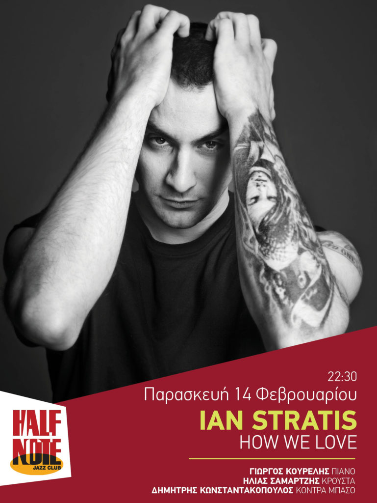 Ο Ίαν Στρατής διαλέγει την ημέρα των ερωτευμένων για μια ακόμα μοναδική εμφάνιση στο Half Note. Μαζί με ένα μουσικό τρίο εξαιρετικών μουσικών, ο Ίαν Στρατής θα μας τραγουδήσει τραγούδια για τον έρωτα. Μια συναυλία με απρόσμενες διασκευές και μοναδικές ερμηνείες, σε τραγούδια όπως το “How we love”, “I’ve got you under my skin”, “Black bird”, “Shape of my heart” κ.ά.