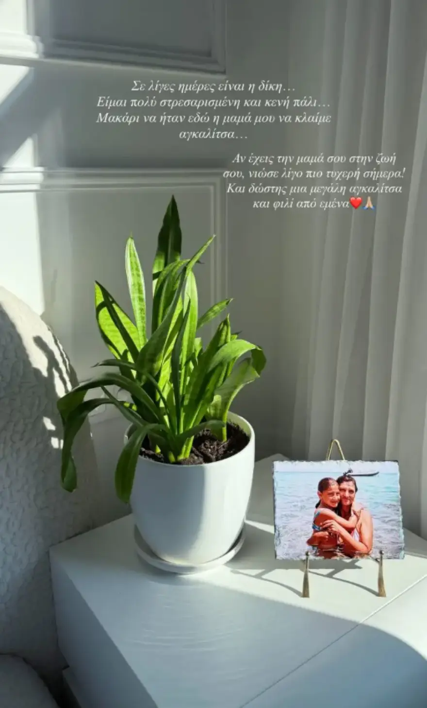 «Σε λίγες μέρες είναι η δίκη… Είμαι πολύ στρεσαρισμένη και κενή πάλι… Μακάρι να ήταν εδώ η μαμά μου να κλαίμε αγκαλίτσα… Αν έχεις την μαμά σου στην ζωή σου, νιώσε λίγο πιο τυχερή σήμερα! Και δώσ’ της μια μεγάλη αγκαλίτσα και φιλί από εμένα!» έγραψε η Ιωάννα Τούνη στο story της.