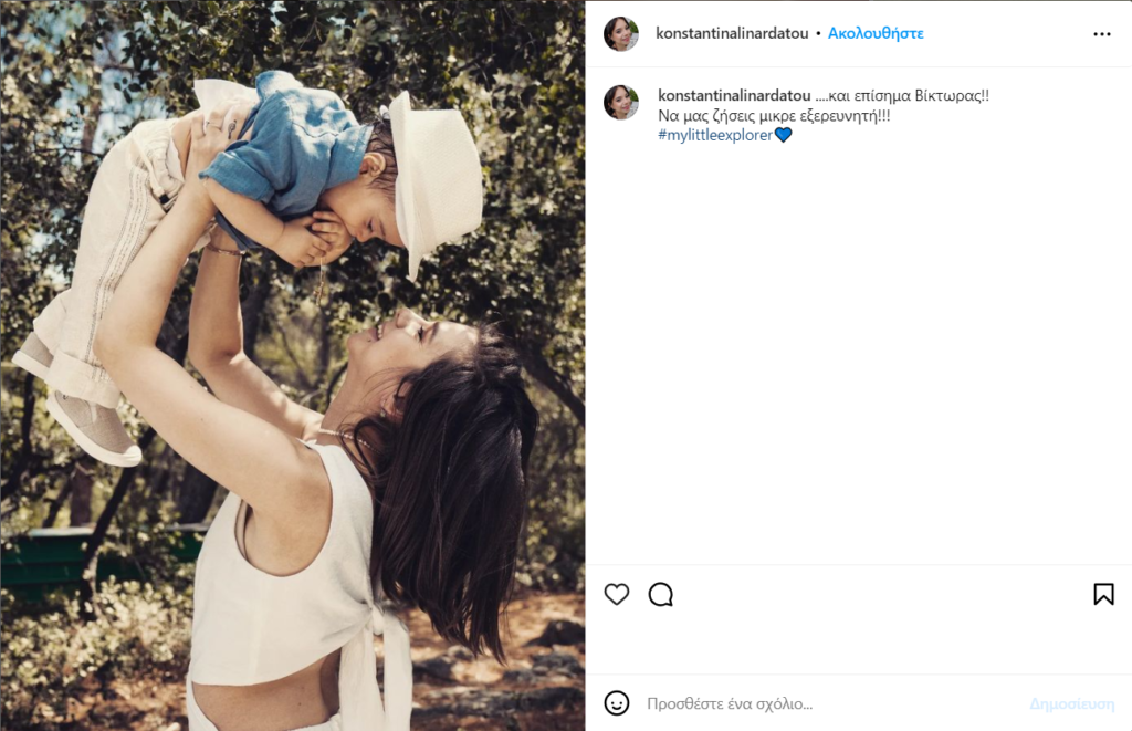 «Και επίσημα Βίκτωρας!!Να μας ζήσεις μικρέ εξερευνητή!!!» έγραψε η Κωνσταντίνα Λιναρδάτου στην ανάρτησή της η ηθοποιός στην οποία κρατά σφιχτά τον γιο της.