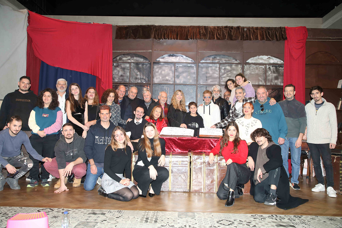 Συντελεστές και ηθοποιοί έκοψαν την πρωτοχρονιάτικη πίτα τους, γιορτάζοντας την επιτυχία της παράστασης.