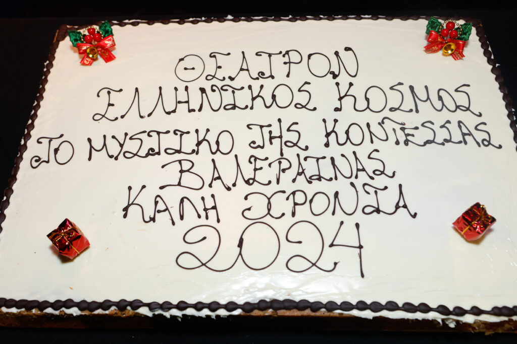 Με χαρούμενη και εορταστική διάθεση ο θίασος και οι συντελεστές της παράστασης «Το Μυστικό της Κοντέσσας Βαλέραινας» έκοψαν την πρωτοχρονιάτικη πίτα, παρουσία της Αντιπροέδρου του Ιδρύματος Μείζονος Ελληνισμού Σοφίας Κουνενάκη Εφραίμογλου, του Διευθύνοντος Συμβούλου Δημήτρη Εφραίμογλου και του Καλλιτεχνικού Διευθυντή Θρασύβουλου Γιάτσιου, το Σάββατο 13 Ιανουαρίου, στο «ΘΕΑΤΡΟΝ» του Κέντρου Πολιτισμού «Ελληνικός Κόσμος».