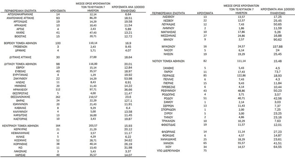 Η γεωγραφική κατανομή των κρουσμάτων ανά περιφερειακή ενότητα: