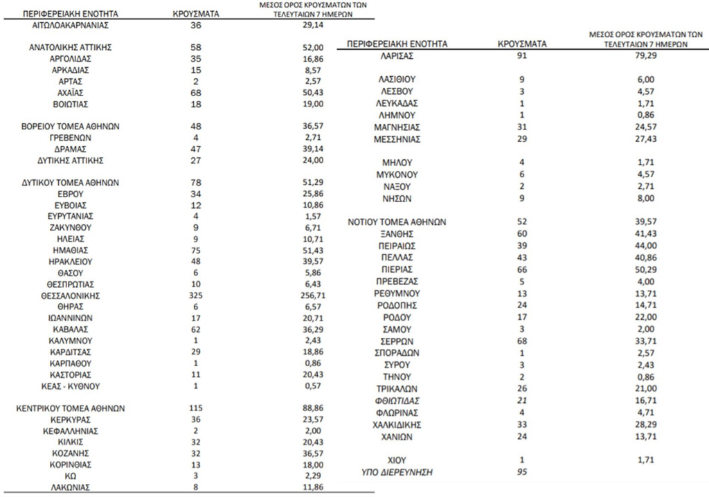 Η γεωγραφική κατανομή των νέων κρουσμάτων ανά περιφερειακή ενότητα: