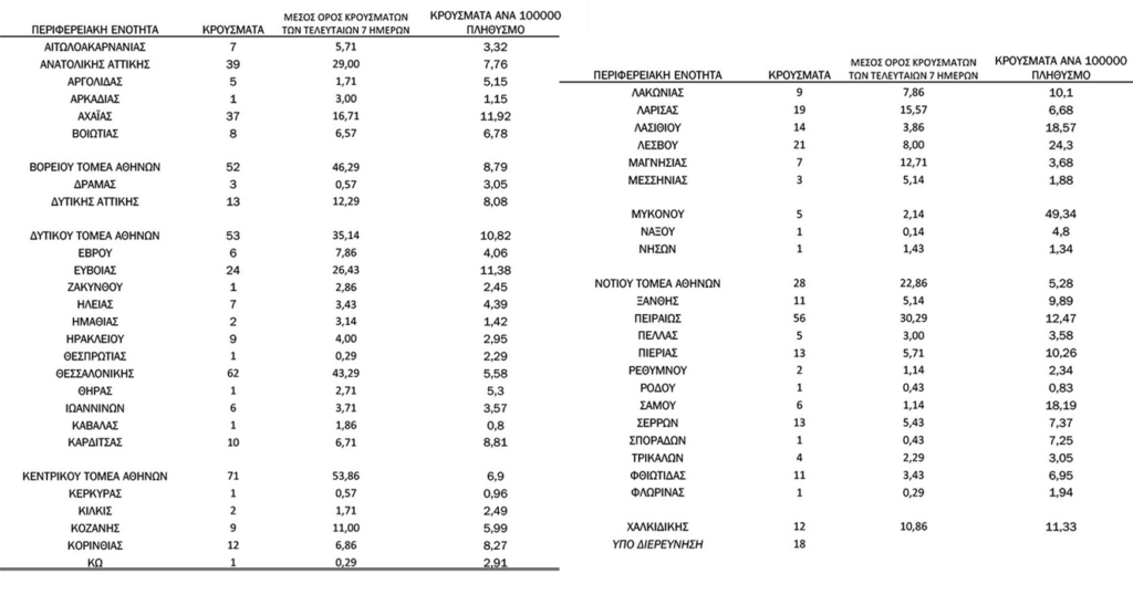 Η γεωγραφική κατανομή των εγχώριων κρουσμάτων: