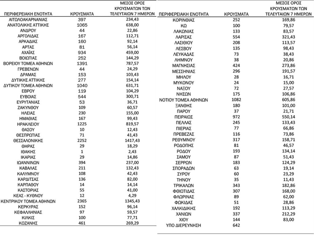 Η γεωγραφική κατανομή των κρουσμάτων ανά περιφερειακή ενότητα:
