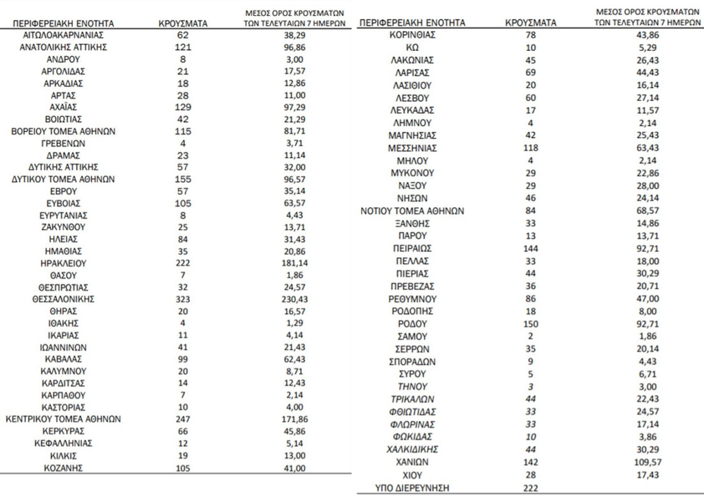 Η γεωγραφική κατανομή των κρουσμάτων ανά περιφερειακή ενότητα: