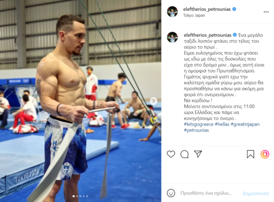 «Πάμε να κυνηγήσουμε το όνειρο», αυτό το μήνυμα που έστειλε ο Λευτέρης Πετρούνιας μέσω του προσωπικού του λογαριασμού στο Instagram, πριν τον τελικό των κρίκων στους Ολυμπιακούς Αγώνες του Τόκιο.