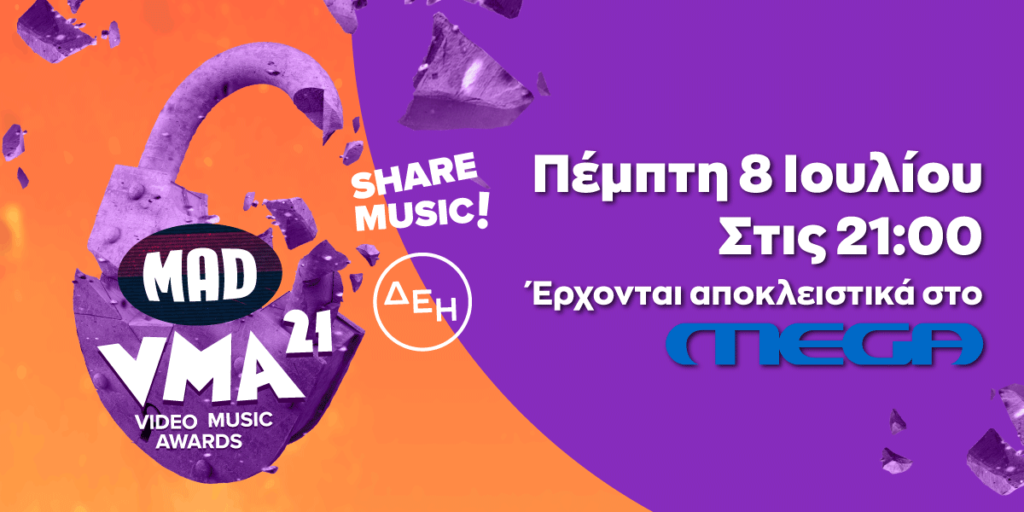 «MAD VIDEO MUSIC AWARDS 2021 ΑΠΟ ΤΗ ΔΕΗ» ΠΕΜΠΤΗ 8 ΙΟΥΛΙΟΥ ΣΤΙΣ 21:00 ΣΤΟ MEGA