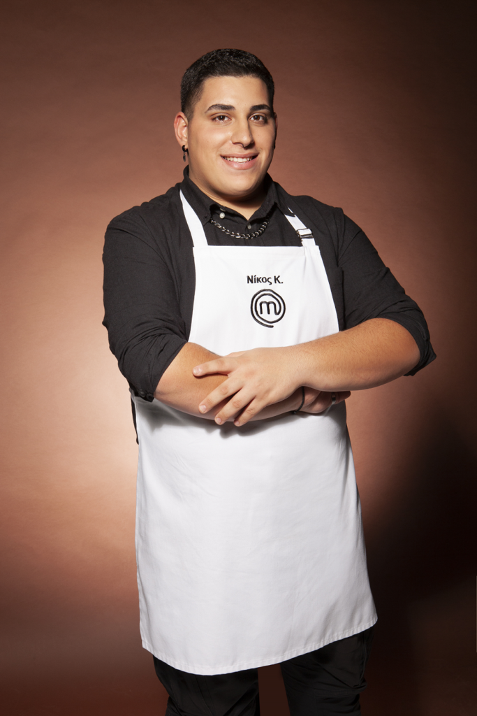 Με καταγωγή από το Ηράκλειο Κρήτης, ο Νίκος μοιράζει τον χρόνο του ανάμεσα στη μαγειρική και στο βιβλιοπωλείο, που κληρονόμησε από τον πατέρα του. Λάτρης του κλασικού μαραθωνίου, έρχεται στο MasterChef για να πάρει όσα μπορεί από τον διαγωνισμό και να εξελιχθεί μαγειρικά.