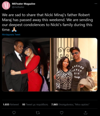 Δύσκολες ώρες για τη Nicki Minaj, καθώς θρηνεί την απώλεια του πατέρα της.