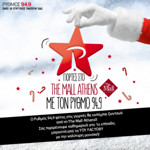 Από αύριο, Σάββατο 10 Δεκεμβρίου και μέχρι το τέλος της χρονιάς, ο Ρυθμός 949 θα βρίσκεται καθημερινά στο THE MALL ATHENS μπροστά από το TOY FACTORY στο 1ο επίπεδο.