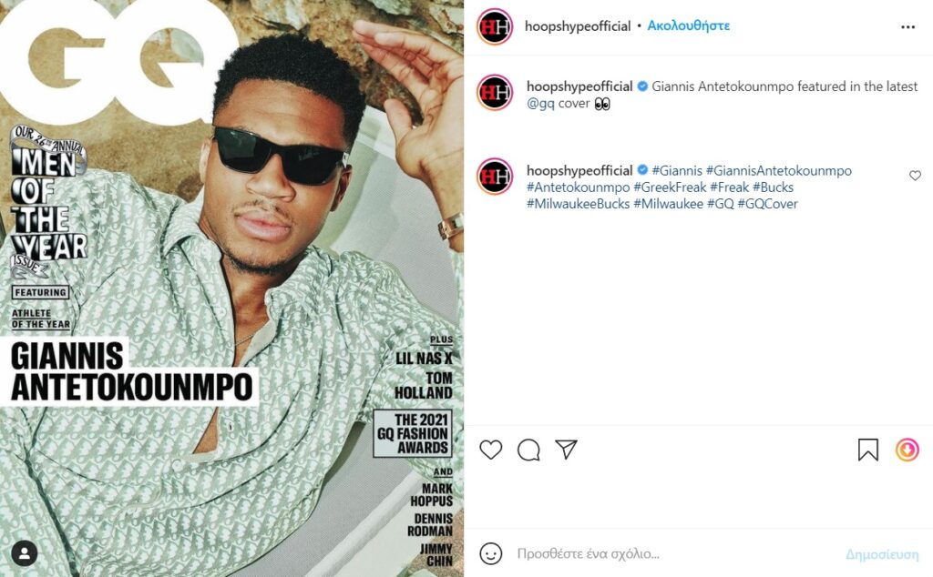 Μάλιστα, στο 26ο ετήσιο αφιέρωμα του το GQ, ο Greek Freak αναφέρεται στους ανθρώπους που έχουν αφήσει το δικό τους στίγμα στην κοινωνία μας, ενώ φιγουράρει και στο εξώφυλλο του περιοδικού.
