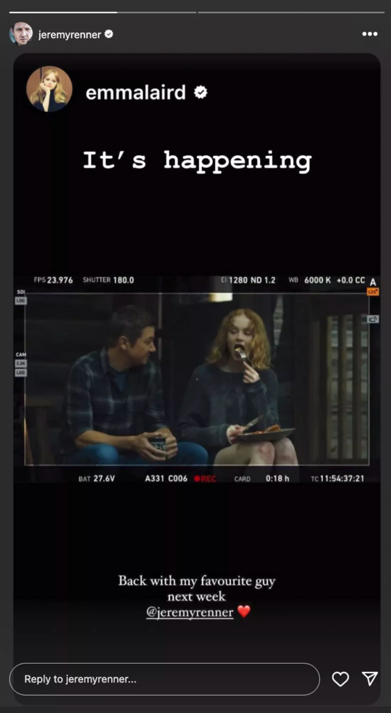 Μάλιστα, η Emma Laird που συμπρωταγωνιστεί με τον ηθοποιό, αποκάλυψε την ευχάριστη είδηση με ένα στιγμιότυπο μέσω Ιnstagram Story από τα γυρίσματα.