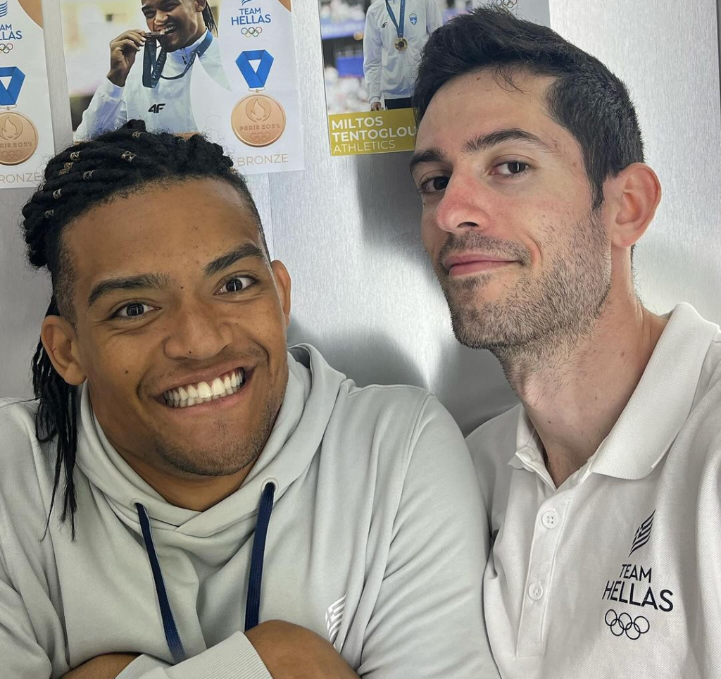 Όπως είναι γνωστό, ο Μίλτος Τεντόγλου και ο Εμμανουήλ Καραλής εκτός από Ολυμπιονίκες είναι κολλητοί φίλοι αλλά και συγκάτοικοι στο Ολυμπιακό χωριό στο Παρίσι.