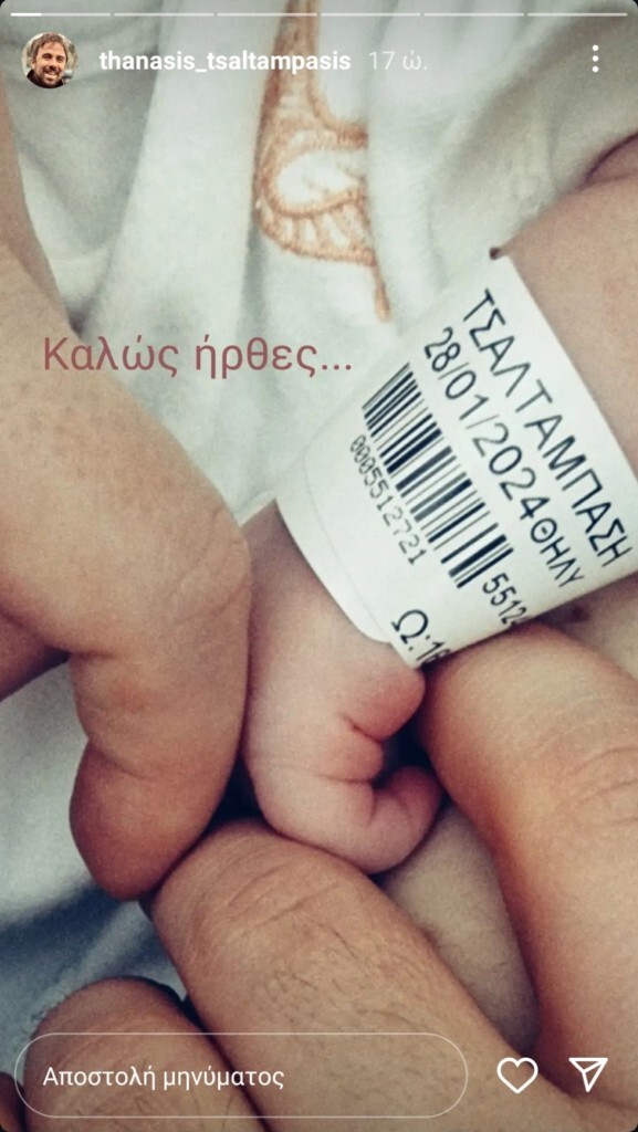 Ενώ την ευχάριστη είδηση έκανε γνωστή ο Θανάσης Τσαλταμπάσης ανεβάζοντας την πρώτη φωτογραφία της κόρης τους στα instastories.