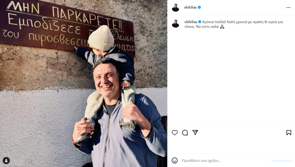 «Χρόνια πολλά! Καλή χρονιά με αγάπη & υγεία για όλους. Να είστε καλά» έγραψε ο Βασίλης Κικίλιας στην ανάρτηση του και ευχήθηκε για το νέο έτος!