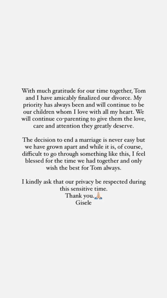 Η ανάρτηση της Gisele για το διαζύγιο: