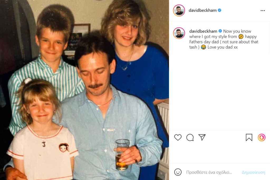 “Τώρα ξέρετε από που πήρα το στιλ”, σχολίασε ο David Beckham στη φωτογραφία που ανέβασε πριν λίγες ημέρες για να ευχηθεί στον πατέρα του και στην οποία μπορεί κανείς να δει τον έφηβο να ποζάρει με τους γονείς του και μία από τις αδελφές του.