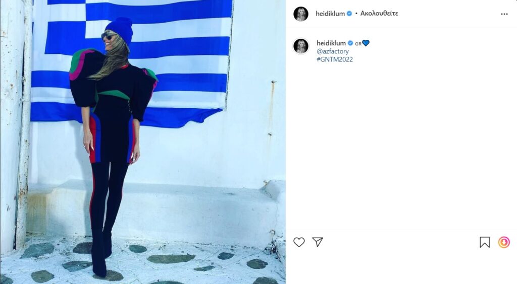 Αυτή τη φορά η Heidi Klum μοιράστηκε με τους followers της δυο νέες φωτογραφίες από το νησί των ανέμων και μάλιστα στην μία από ποζάρει με φόντο την ελληνική σημαία.