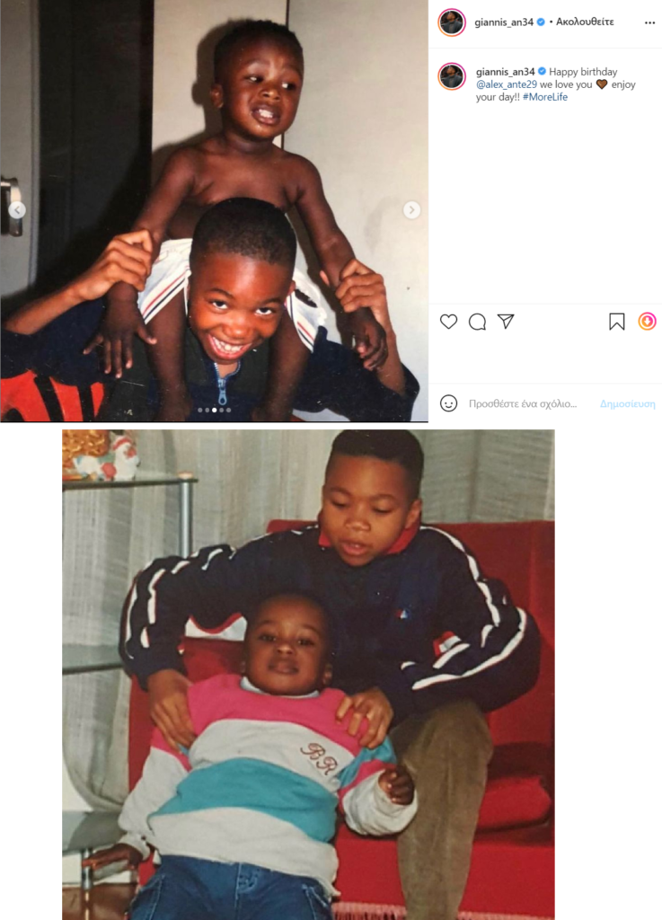 Αυτή τη φορά ο μπασκετμπολίστας θέλησε να δώσει τις ευχές του και δημόσια στον αδερφό του Άλεξ για τα 20α του γενέθλια, έτσι δημοσίευσε μέσα από τον προσωπικό του λογαριασμό στο instagram φωτογραφίες μαζί του.