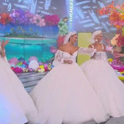 Οι τρεις τους μπήκαν στο πλατό ντυμένες νύφες με τον Νίκο Μουτσινά να μένει άναυδος.
